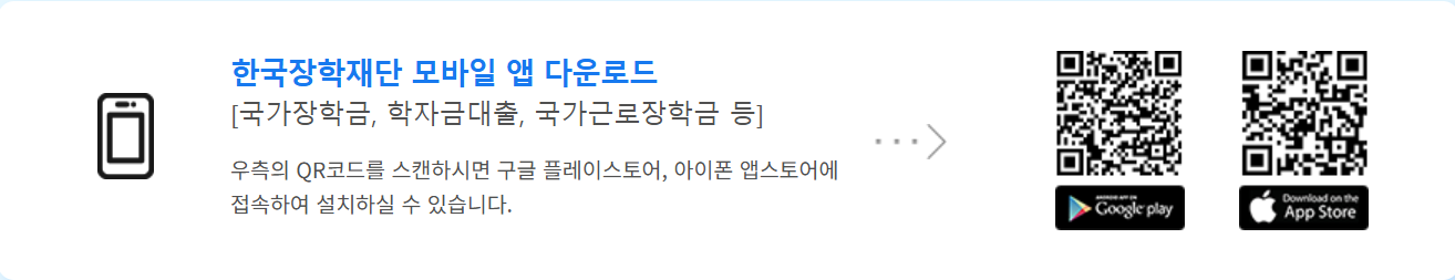 1. 구글 플레이스토어/앱스토어에서 '한국장학재단' 앱 다운로드